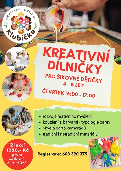 Kreativní dílničky, mají taky změnu dne a budou každý čtvrtek od 16:00-17:00 hodin. První setkání 6.2.2025