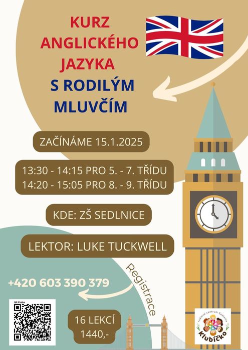 Angličtina s rodilým mluvčím na základní škole zůstává beze změny. První setkání 15.1.2025