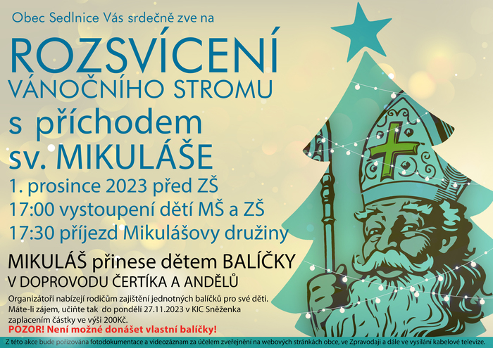 Rozsvícení vánočního stromu s příchodem sv. Mikuláše